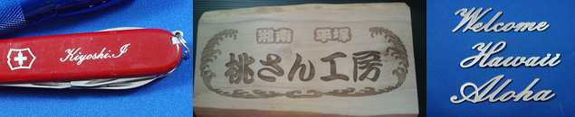 タイルはもちろん、木やアクリル製品、ガラスなどにお好きなデザインを彫りこんで、他には無い贈り物へと作り上げます。名入れプチギフトもご相談ください。詳しくはコンテンツ・メニューのオリジナルギフト商品をクリックしてください!!