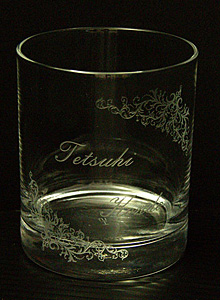 ボトルやグラスを始め、ガラス製品などに名入れやお好みのデザインを彫ります。